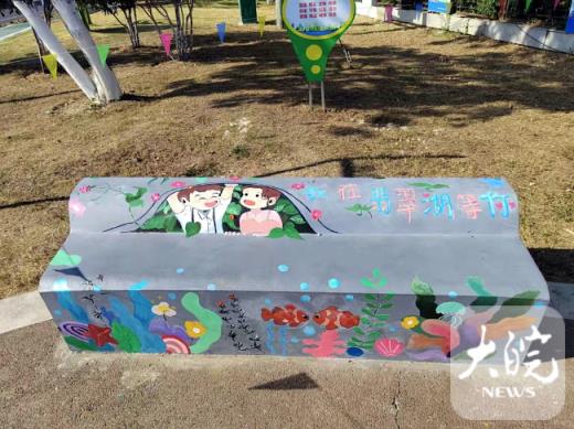 当天上午,在合肥经开区环翠路翡翠湖风景区西门公厕外,一处石凳上被彩绘涂满,花草鱼水和人物惟妙惟肖,“我在翡翠湖等你”的字样让冷冰冰的石凳变得充满人文气息,让人感到暖意。经开区应急和城管局负责人表示,这处涂鸦是景区管理处邀请美术人士创作的,作为城市家具人文化的尝试。